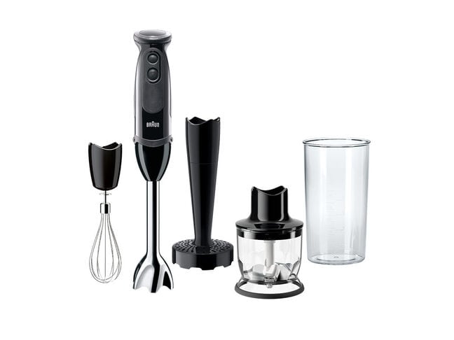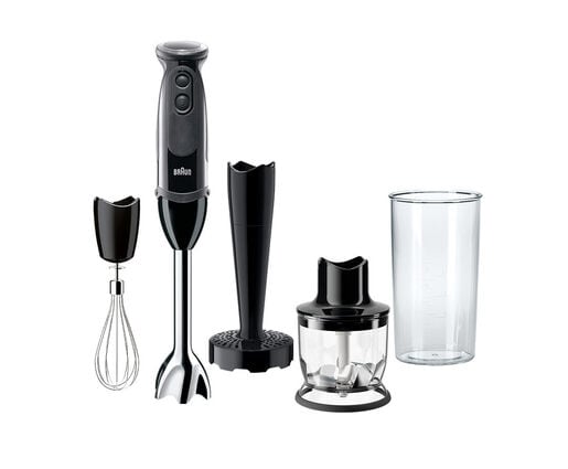 • The Braun MultiQuick 5 Vario gives you maximum blending control. 21-Speed VarioSpeed technology offers easy one-handed operation while the additional TurboBoost speed setting adds an extra burst of power. Featuring the world’s first PowerBell technology, Braun’s unique blending shaft and stainless-steel blades produce finer blends. SPLASHControl technology minimizes splashing for less cleanup. The EasyClick Accessory System includes a 1.5-cup chopper, a whisk and a masher. Even the hardest foods are no match for the powerful 400 watt precision-engineered motor. With the MultiQuick 5 Vario, maximum control and multiple possibilities are just the beginning.