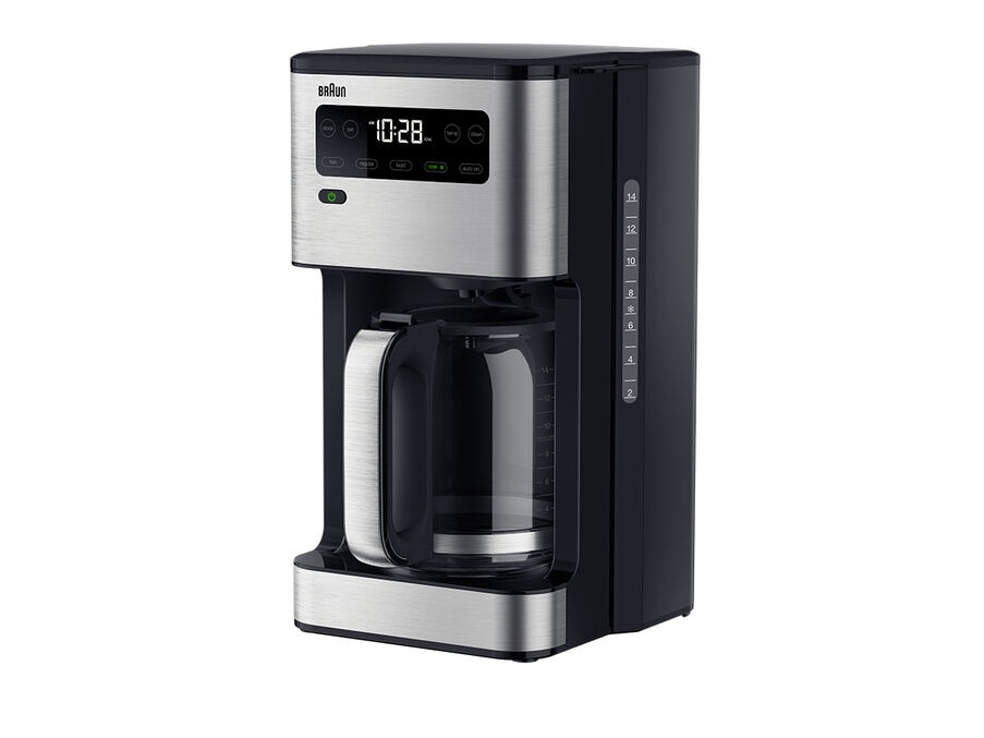 Stainless steel accented, uniquely designed carafe ensures coffee stays warmer for longer.
