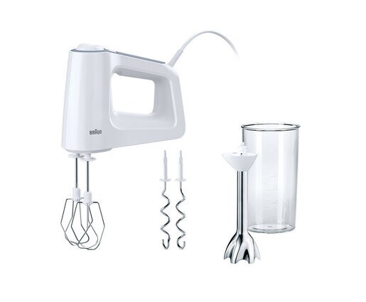 Due to the clever design, the hand mixer intuitively fastens all attachments to the front, allowing the same comfortable hand position to be maintained for mixing, blending and resting no matter which attachment is used. Since it stands stably with any attachment, your work area stays clean, so you can quickly move on to the next step without interruptions.