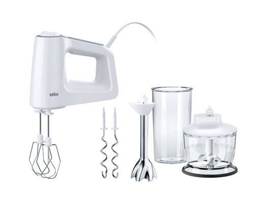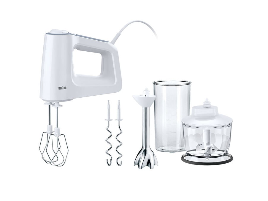 Due to the clever design, the hand mixer intuitively fastens all attachments to the front, allowing the same comfortable hand position to be maintained for mixing, blending and resting no matter which attachment is used. Since it stands stably with any attachment, your work area stays clean, so you can quickly move on to the next step without interruptions.