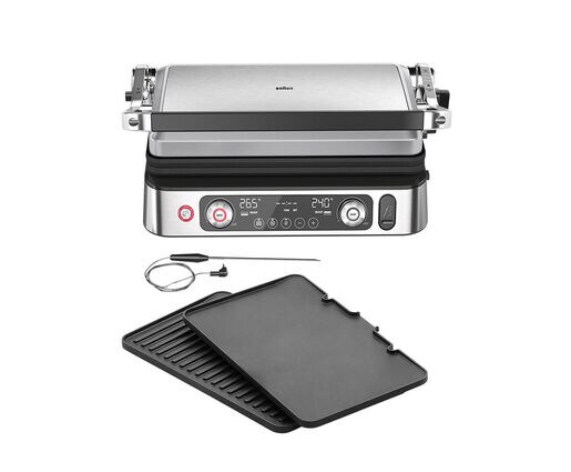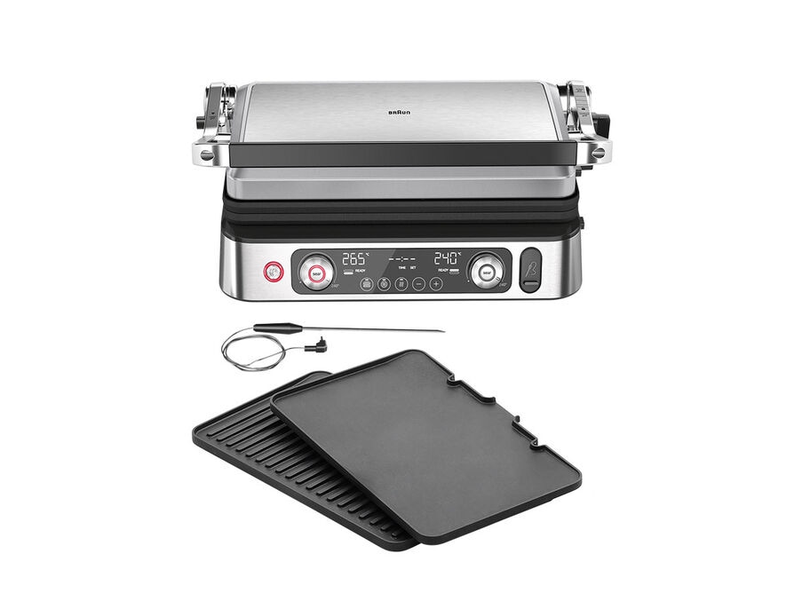 Disfruta de resultados de nivel profesional y un rendimiento de precisión para desayunos, comidas, cenas y aperitivos. Experimenta una versatilidad sin límites con dos placas diferentes y tres posiciones de cocción en la mayor superficie de cocción de Braun.* Te encantará la velocidad y la eficacia de los 2200 vatios de potencia a través de los elementos calefactores integrados para una cocción más rápida y la precisión de la sonda térmica integrada. Y si lo que te gusta es dorar, el botón Sear sube la temperatura del grill a 265 °C para formar una costra dorada que intensifica el sabor de cualquier corte de carne.