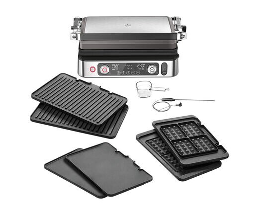 Profitez de résultats de niveau professionnel et de performances de précision pour le petit-déjeuner, le dîner, le souper et les en-cas. Découvrez la polyvalence illimitée que la combinaison intelligente de trois types de plaques de gril et de trois positions de cuisson vous offre sur la plus grande surface de cuisson de Braun*. Vous allez adorer la précision de la thermosonde intégrée ainsi que la vitesse et l’efficacité de 2’200 watts de puissance grâce aux éléments chauffants intégrés pour une cuisson plus rapide. Et si vous voulez tirer le maximum de votre barbecue, le bouton Sear («Feu vif») fait grimper la température du gril à 265°C pour former une belle croûte brune qui donne encore plus de saveur à tout morceau de viande.